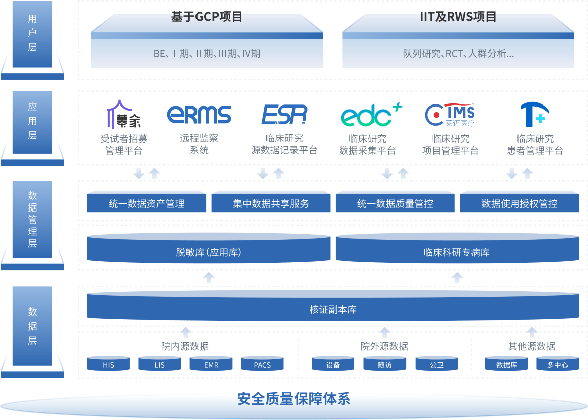 以自有的數(shù)字紙張及醫(yī)學(xué)NLP專利技術(shù)為基礎(chǔ)、利用人工智能和大數(shù)據(jù)技術(shù)構(gòu)建的全方位臨床研究數(shù)智一體化平臺(tái)。本平臺(tái)集數(shù)據(jù)采集/錄入、數(shù)據(jù)治理分析、數(shù)據(jù)溯源等數(shù)據(jù)管理到項(xiàng)目精細(xì)化全流程管理和患者多端(PC端、移動(dòng)端)管理于一體,支持包括了臨床試驗(yàn)(BE和Ⅰ-Ⅳ期),RWS、IIT等在內(nèi)的各種類型的臨床研究,多角度及多維度實(shí)現(xiàn)臨床研究的數(shù)字化和智能化管理。